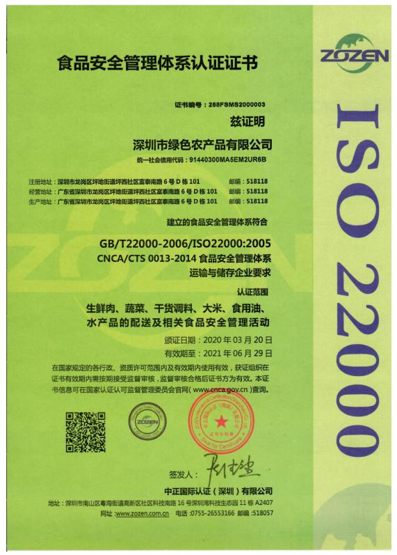 食品安全管理体系认证证书